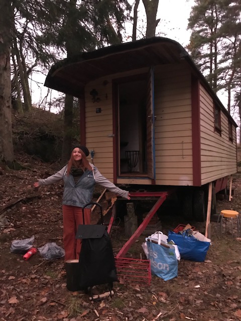 Hade så länge drömt om en egen sommarstuga… hemnetknarkat i åratal..haft saker på gång men aldrig vågat slå till det var för dyrt, för långt bort, osv osv… ville inte bli fast i ett ekorrhjul av lån osv osv… så hittade jag den- en cirkusvagn… jag blev omedelbart förälskad i den-min snälla morbror som är lastbilschaufför transporterade den till min väns tomt där den står nu… en liten lekstuga för vuxna, en plats att leka, vara allvarlig, dra sig undan och vara i naturen…